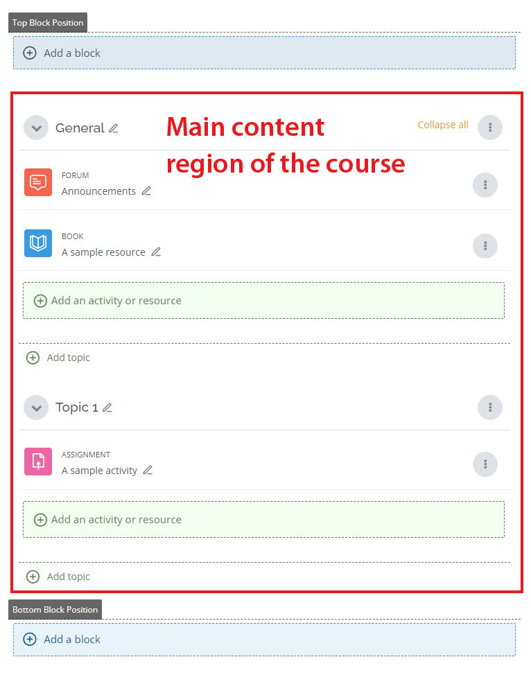 Hiding the course title can be useful if you want to prevent further scrolling before the course content is displayed, or if you want to use a custom course title in the main region area.