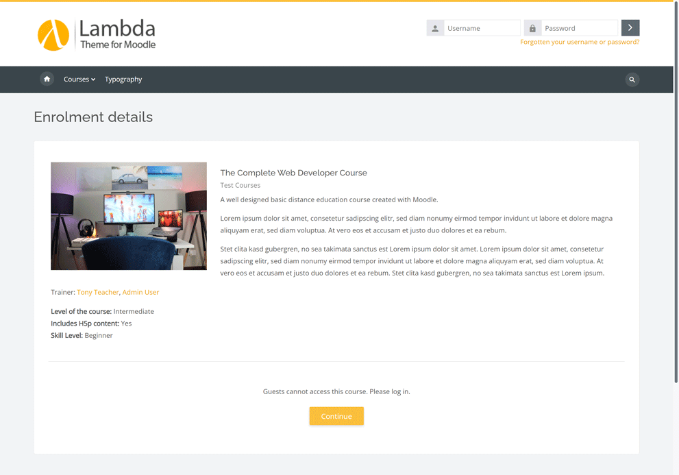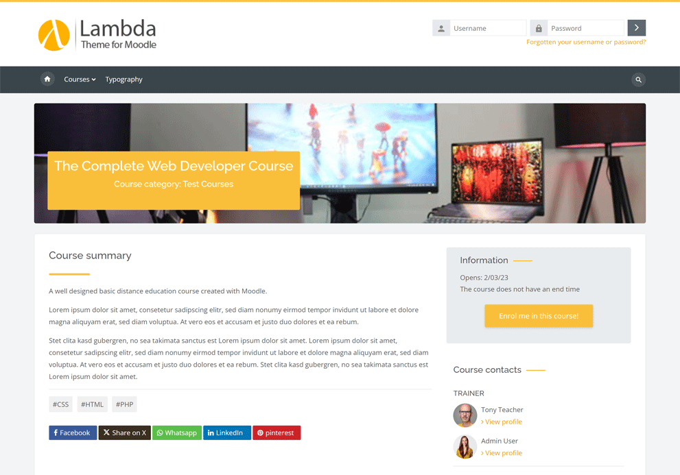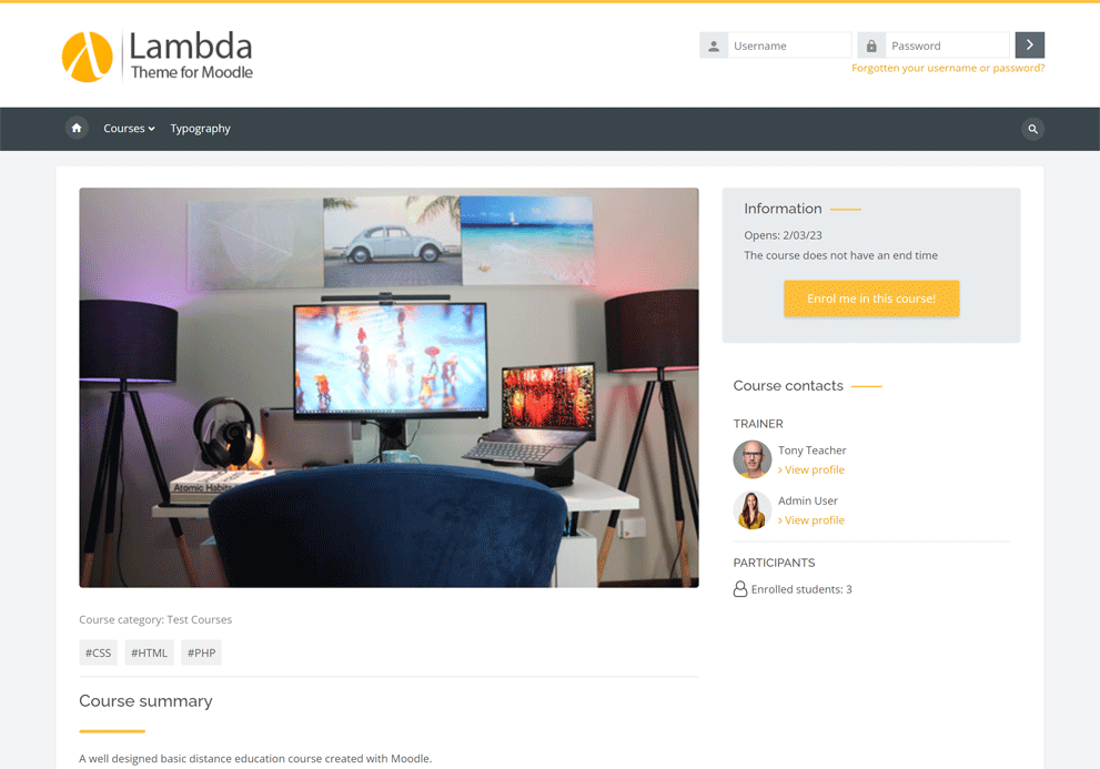 first of all, thank you for choosing Theme Lambda for Moodle. Lambda is a Bootstrap based theme with a sharp design and it offers various style and layout options. I hope that you will be satisfied with it.